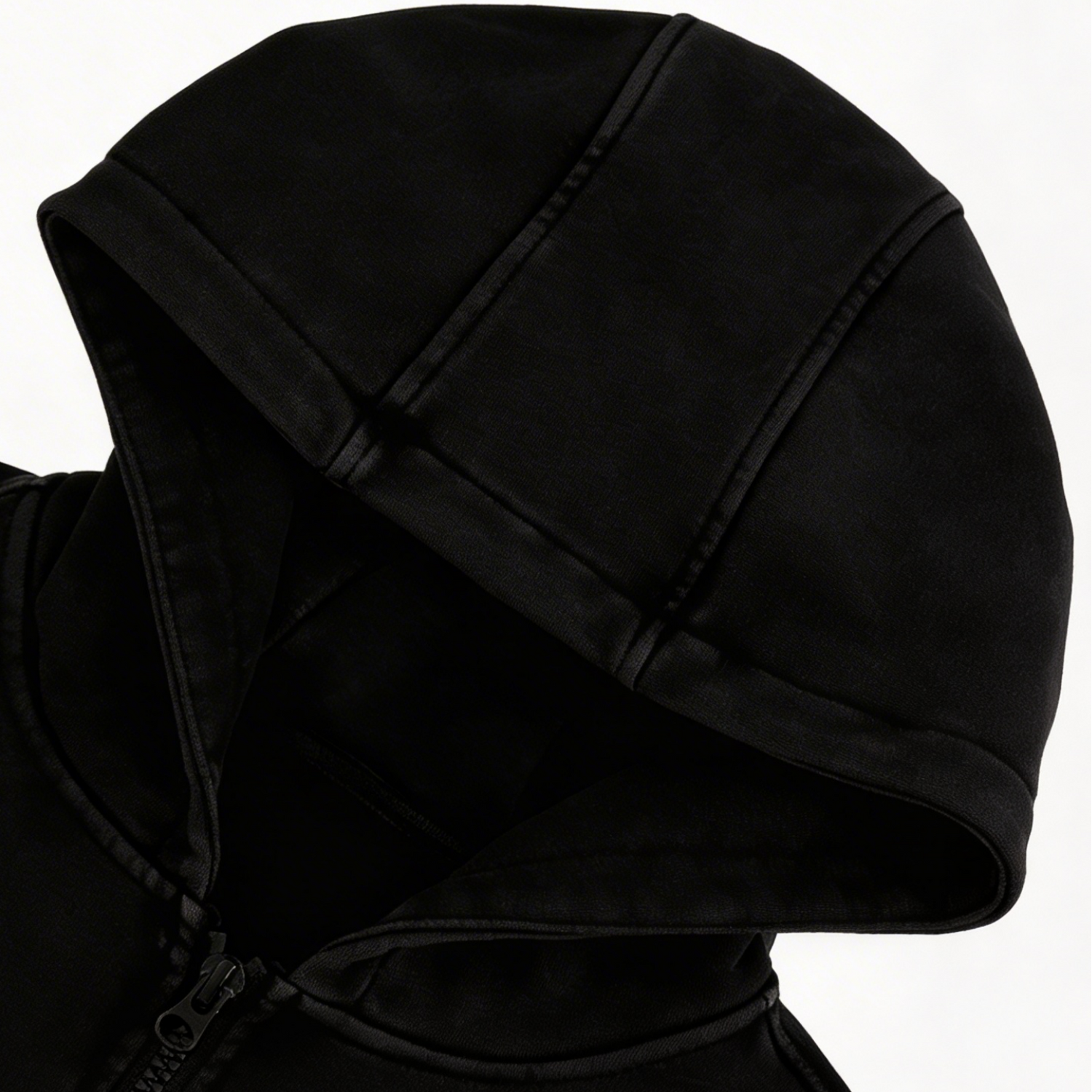 Weight across the torso and in the hood. Nothing in the sleeves. You can move freely — and still feel grounded.